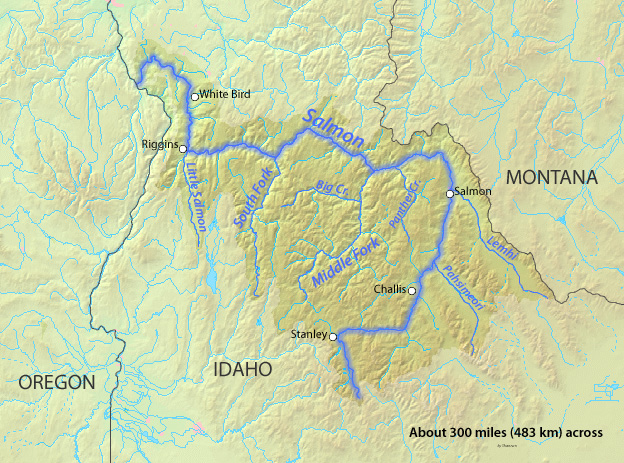 Locals refer to the river as the “River of No Return” because it has no outlet on its southern course. For about 180 miles of the Salmon River, the canyon reaches one mile deep and harbors 1.5 billion year old rocks. It is located in the Salmon-Challis National Forest a 4.3 million acre wilderness area.